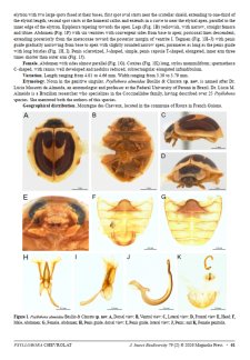 Brasil, Guayana Francesa, Perú. El diseño es compartido con varias otras especies, pero cada una concaracterísticas diferentes. Igualmente se hace necesario analizar el aparato genital. textos e imágenes parcialmente adaptadas de Canepari et al. (2016). Nuevo registro para Guayana Francesa. Se agregan fotos del adulto y la pagina para Guayana Francesa.