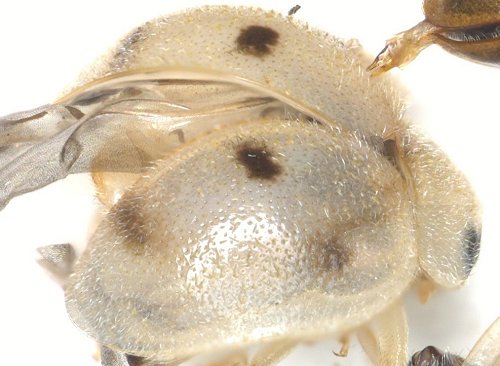 Ecuador. Se reconoce fácilmente por el diseño elitral caracteristico y el pequeño tamaño. Es muy cercana a C. fryii Crotch (1874), la cual se diferencia por una superficie dorsal coriacea y un largo notablemente mayor (5 mm). Se modifica la página de la especie, agregando fotos del adulto.