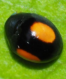 Diagnosis (hembra): Cuerpo corto, ovalado. Cabeza negra. Pronoto negro con borde anterior angosto rojo amarillento. Escutelo y élitros negros, con una gran mancha oval alargada en el pronoto, , amarillo rojiza, de la mitad del largo y del ancho de cada élitro. Lado ventral marrón negruzco. Antenas, piezas bucales y patas rojo amarillento. Puntos del pronoto y élitros grandes y espaciados, más espaciados en los élitros.