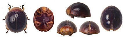 Diagnosis: Cuerpo ovalado, convexo, márgenes, élitros en conjunto redondeados regularmente, ancho máximo ae la mitad de la longitud de los élitros.Cabeza marrón amarillenta, antenas y piezas bucales amarillas. Pronoto marrón rojizo, con un patrón difuso de manchas marrones más oscuras: una cerca del centro de la base y cuatro en semicírculo a su alrededor. Escutelo negro. Élitros negros, con un margen lateral marrón rojizo difuso, interrumpido en zonas, de aproximadamente 1/6 de su ancho y 1/8 de la longitud del élitro en el ápice. Lado ventral marrón amarillento, excepto los hipómeros, la parte interna de la epipleura y los márgenes lateral y apical del abdomen, que son amarillos. Patas amarillas. Pilosidad blanco amarillenta, ausente en el dorso, escasa en la cabeza y en el lado inferior