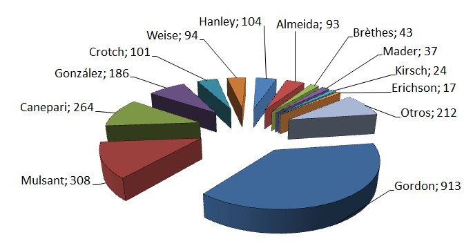 Cantidad de especies de Coccinellidae descritas para América del Sur, según autor (al 15 de julio de 2025).