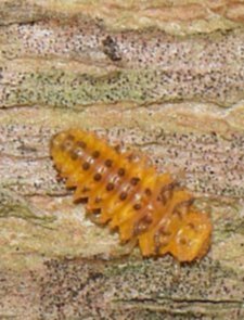 En la naturaleza: Una larva y una pupa (arriba) y otra larva (izquierda), sobre un tronco, fotografiadas en Hacienda El Tigre, Balzar, Guayas, Ecuador, el 10 de agosto de 2021 (foto Felipe Campos, iNaturalist)