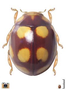 Colombia, Guayana Francesa, Venezuela.La especie se reconoce entre otras especies del género por las manchas elitrales rojizas relativamente grandes y anteriores a la mitad, pero en caso de dudas debe recurrirse a revisar el aparato genital del macho. Material tipo de “América”, el cual debería estar depositado en la Linnean Society of London, UK (LSL), sin embargo, no ha sido estudiado (Gordon, 1985). Se modifica la página de la especie.
