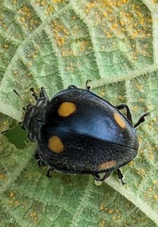 Diagnosis: Forma convexa, ovalada con élitros ojivales, su anchura máxima en el 1/3 anterior. Cabeza, pronoto y escutelo negros. Élitros del mismo color, cada uno con dos manchas amarillas, de un tamaño aproximado a 1/7 del élitro cada una a 1/3 y 4/5 del largo, equidistantes del borde y de la sutura. Lado inferior negro. Patas, antenas y piezas bucales negras, con zonas marrones.